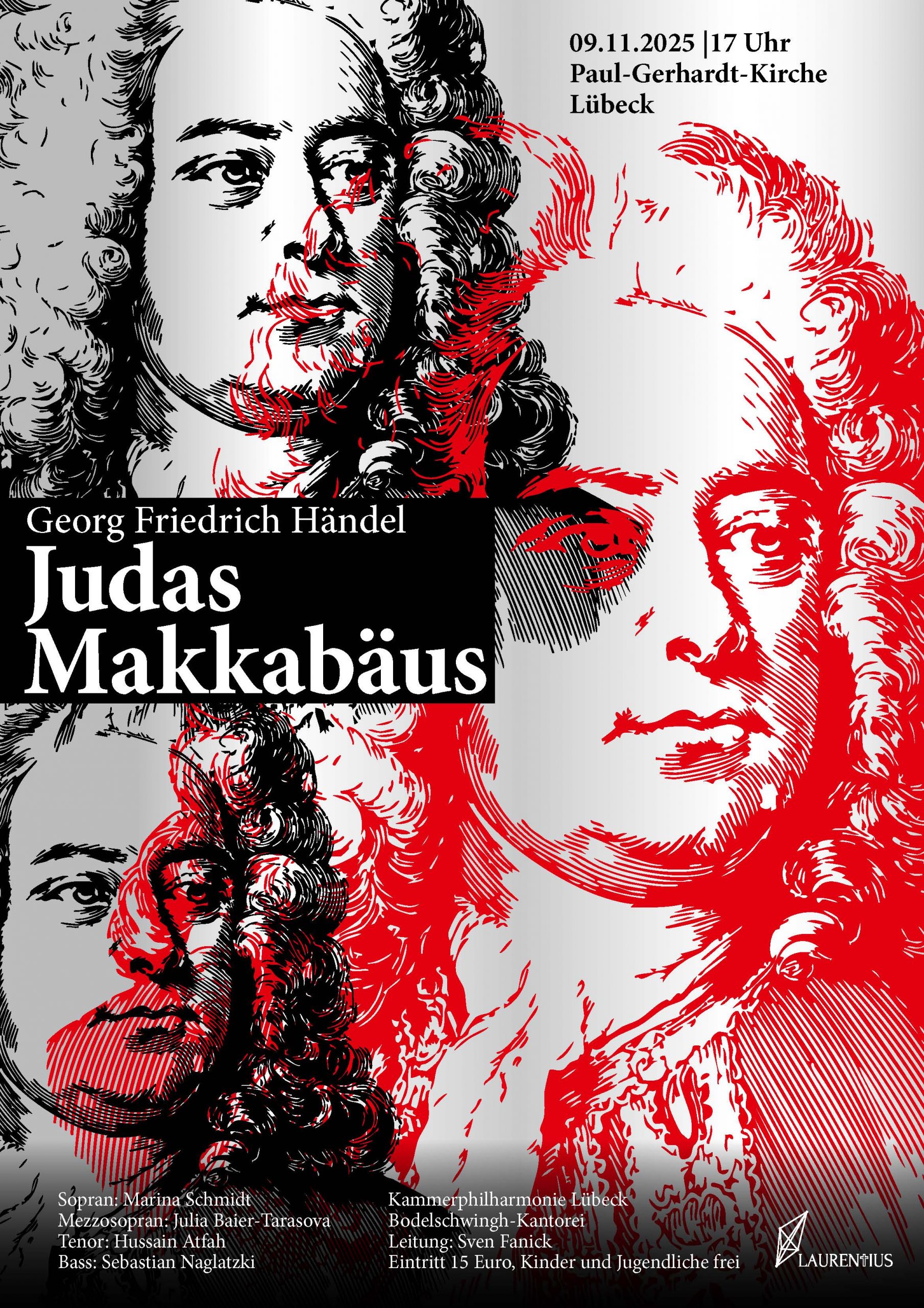 Das Werk wurde 1747 uraufgeführt und schildert den Freiheitskampf des jüdischen Volkes im 2. Jahrhundert vor Christus. Unter der Führung von Judas Makkabäus gelingt es, den geschändeten Tempel in Jerusalem zurückzugewinnen – ein Sieg, der bis heute im jüdischen Chanukka-Fest gefeiert wird. Der 9. November erinnert uns zugleich an die Schrecken der Reichspogromnacht 1938 wie auch an die Freude über den friedlichen Mauerfall 1989. Beides – Entrechtung und Befreiung – spiegelt sich in der Thematik dieses Oratoriums. Händels Musik entfaltet dabei eine besondere Kraft: Sie verbindet dramatische Szenen mit berührender Innigkeit und jubelnder Festlichkeit. Besonders bekannt ist der Chor „See, the conqu’ring hero comes“, dessen Melodie als Adventslied „Tochter Zion, freue dich“ bis heute lebendig ist. Das Oratorium wird in gekürzter Fassung auf Deutsch aufgeführt.